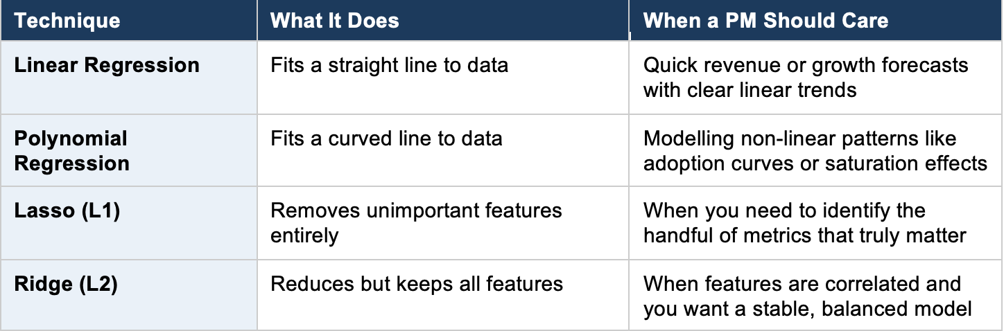 You track 50 user engagement metrics. Which ones actually matter for retention? Lasso regression will analyze all 50 and zero out the irrelevant ones, leaving you with perhaps 8 features that truly drive retention. This tells your team exactly where to focus product improvements.