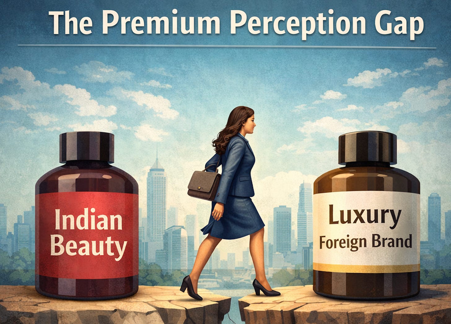 The problem: The premium segment, wealthy urban shoppers who spend heavily on beauty, disproportionately chooses foreign brands or Indian brands that signal premium in a way that matches global luxury expectations. This creates a structural challenge: Indian brands win mass volume but often fail to capture the small, fast-growing premium wallet.