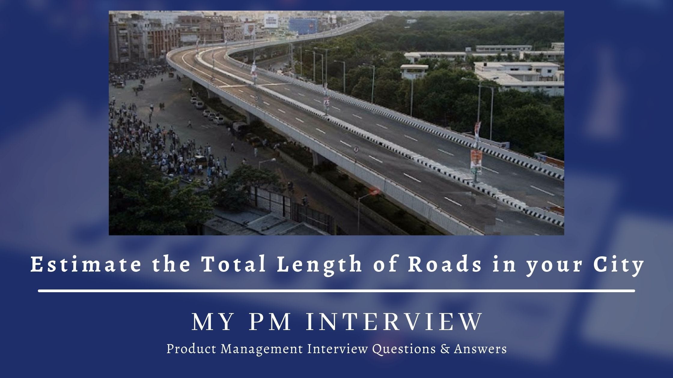 Estimation - Total Length of Roads in your CityGuess Estimate the Total Length of Roads in your CityMy PM InterviewMay 22, 2021∙ Paid3ShareLet’s take the City as - Kolkata (West Bengal, India)(You are free to assume any other city, provided you know its population & population density)Continue reading this post for free, courtesy of My PM Interview.Claim my free postOr purchase a paid subscription.PreviousNext