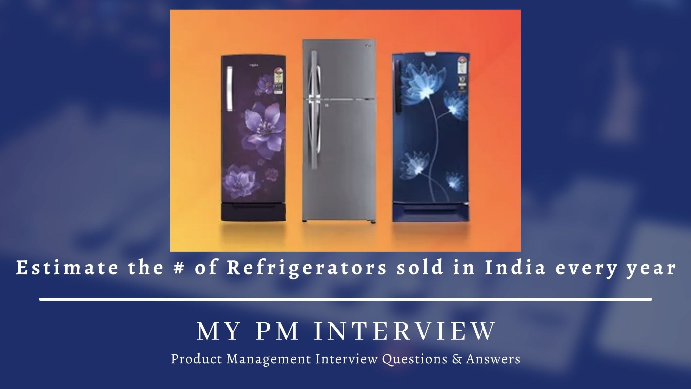 Estimation - Number of Refrigerators sold in India every yearGuess Estimate the number of Refrigerators sold in India every yearMy PM InterviewMay 21, 2021∙ Paid3ShareInterview Tip: Ask Clarifying Questions to understand the scope of the problem.Q) Are we considering Refrigerators for both Domestic & Commercial use?A) Let’s consider, domestic use only.This post is for paid subscribersSubscribeAlready a paid subscriber? Sign inPreviousNext