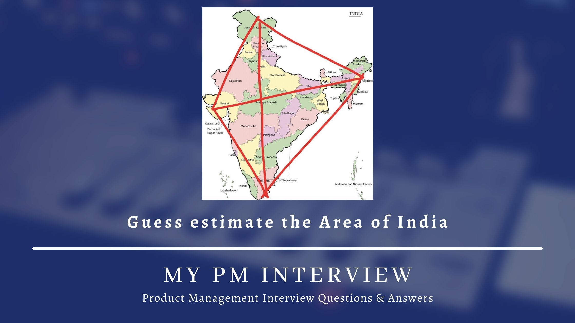 Estimation - The Area of IndiaGuess estimate the Area of IndiaMy PM InterviewMay 20, 2021∙ Paid4ShareMy PM Interview - Product Manager Interview Question AnswersPM Interview: How to Answer Estimation Questions?Read more4 years ago · 3 likes · My PM InterviewThe map of India looks like a Rombus, doesn’t it?Known:The area of Rombus = (Product of Diagonals)/2Distance = Speed x TimeFor the diagonals, we need to calculate the distance between (North-South) &…This post is for paid subscribersSubscribeAlready a paid subscriber? Sign inPreviousNext