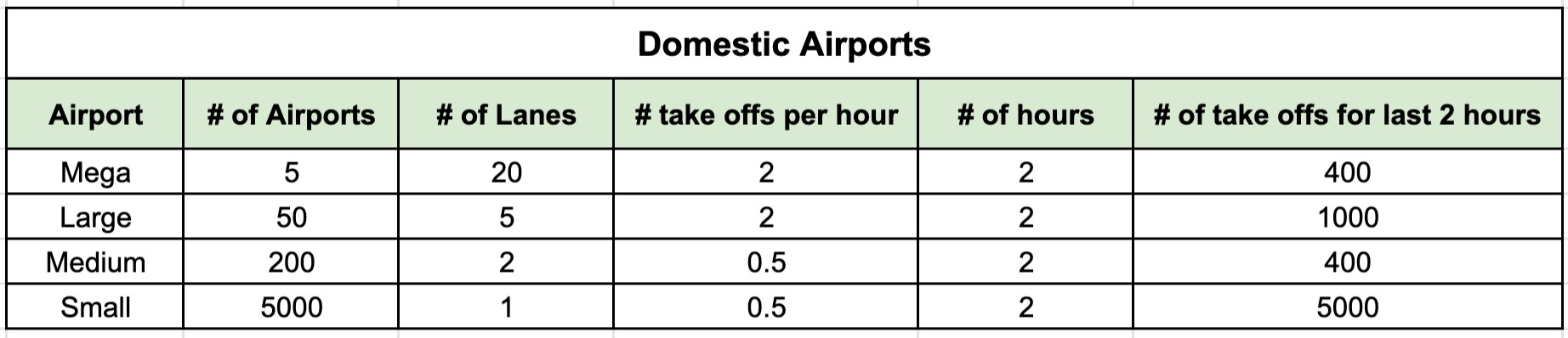 = Total number of domestic departures from one airport in that size group X Number of airports in that size group