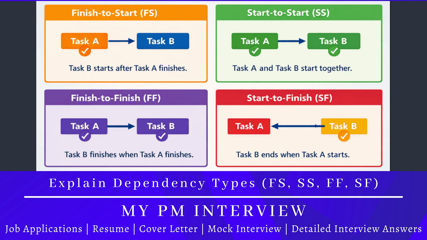 Project Management Interview Preparation: Explain Dependency Types (FS, SS, FF, SF)