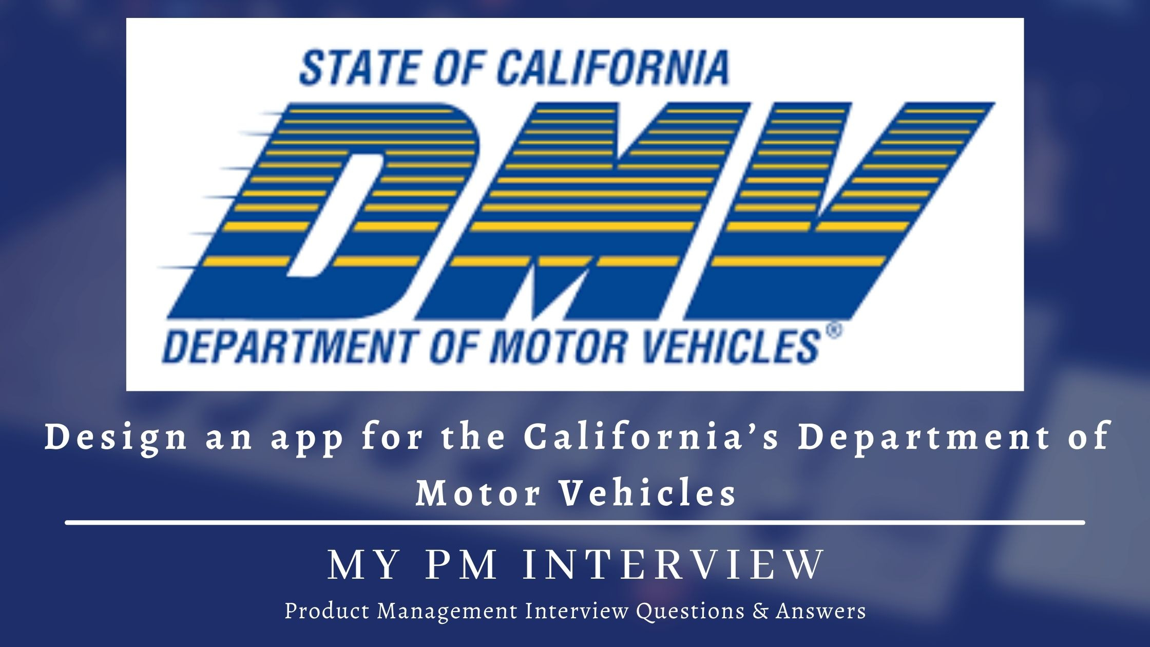 Design an app for the California’s Department of Motor Vehicles | Google PM InterviewProduct Design - Google Product Manager Interview Question: How would you design an app for the California’s Department of Motor Vehicles.My PM InterviewJun 18, 2022∙ Paid4ShareLet’s get started with the solution (remember to follow the framework),Continue reading this post for free, courtesy of My PM Interview.Claim my free postOr purchase a paid subscription.PreviousNext
