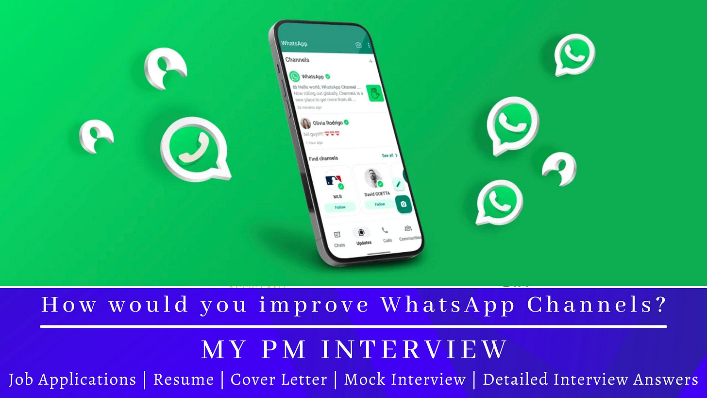 Product Improvement - Meta Product Manager Interview: How would you improve WhatsApp Channels? - Asked at Meta, Google Adobe, Microsoft.