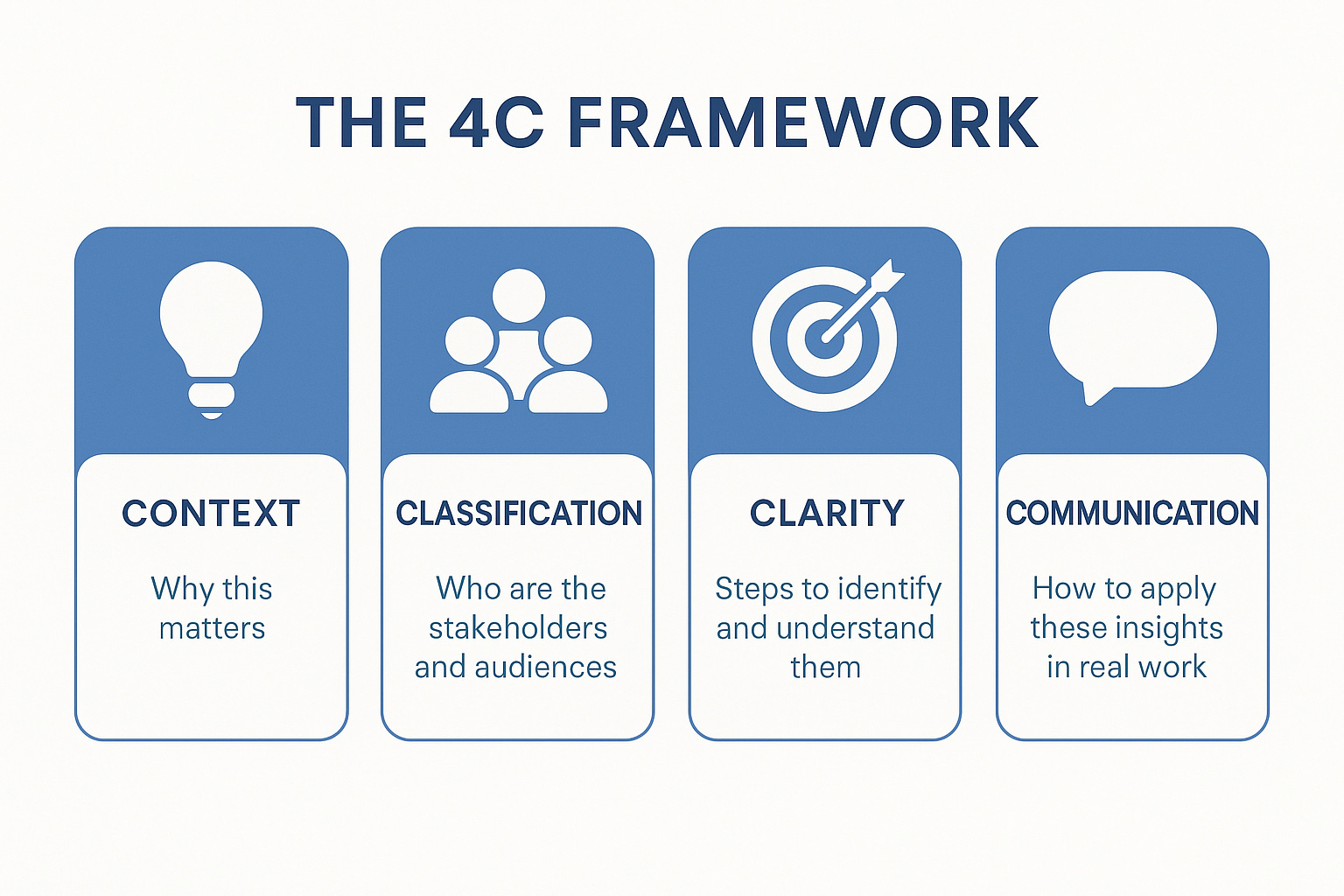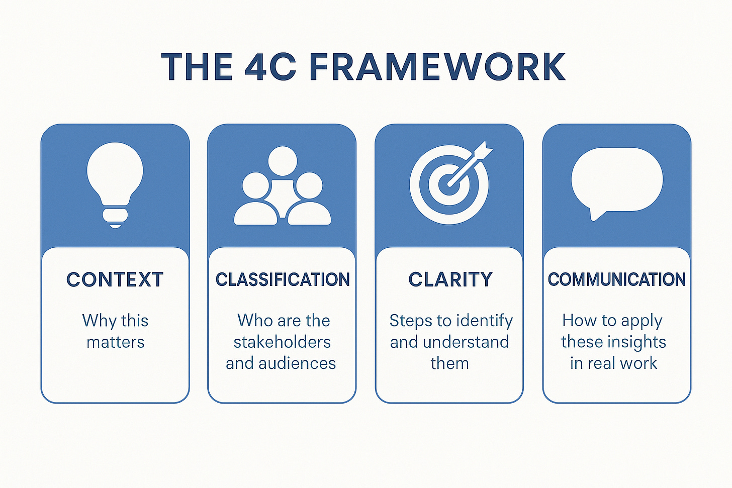 That’s why we use the 4C Framework, a practical guide to stakeholder and audience mastery: