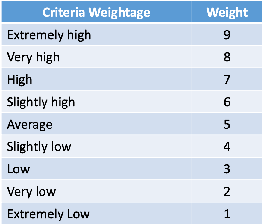 Not all criteria may carry the same level of importance. If some factors are more critical than others, you can assign weights to the criteria to reflect their significance.