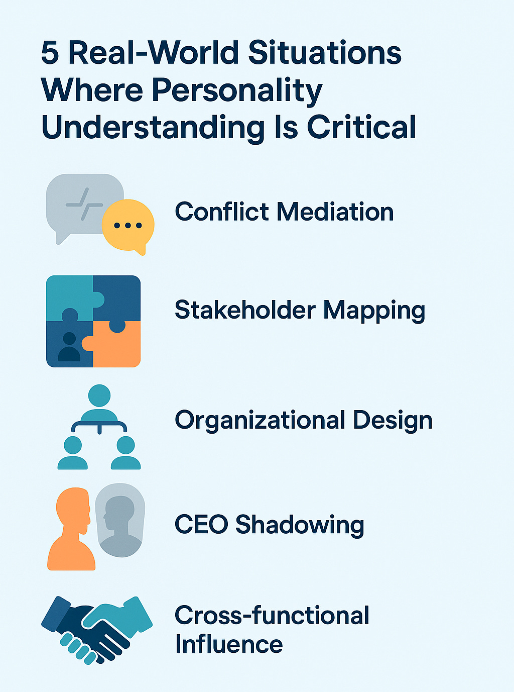 Below are five real-world scenarios where personality intelligence helps a CoS excel behind the scenes and elevate leadership impact: