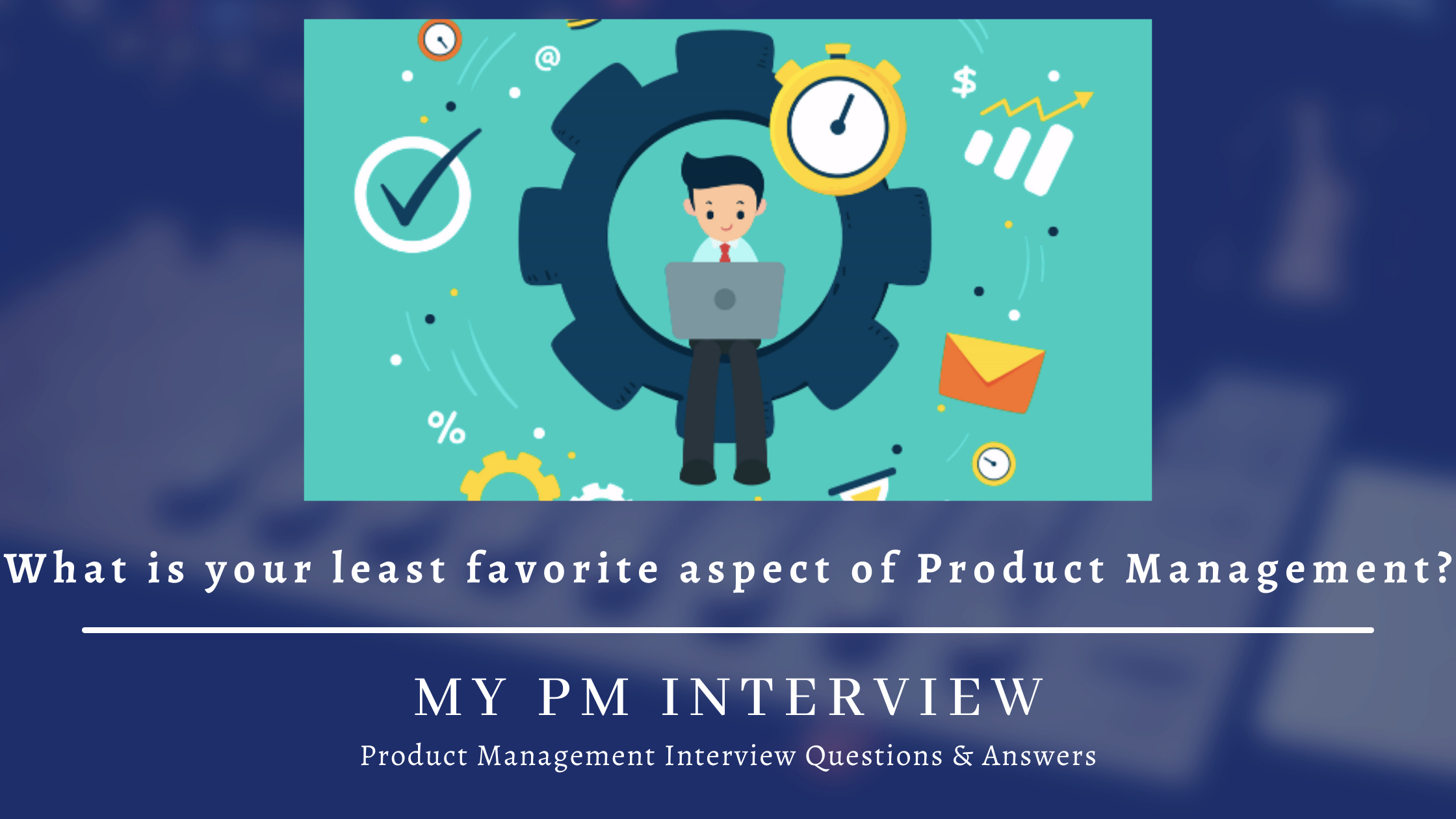 What is your least favorite aspect of product management? - BehavioralWhat is your least favorite aspect of product management? and Why?My PM InterviewJun 15, 2021∙ Paid4ShareThis question is checking that your values align with the company and the role you’re interviewing for. Make sure you research the organization beforehand and include:An honest answer—avoid skipping …This post is for paid subscribersSubscribeAlready a paid subscriber? Sign inPreviousNext